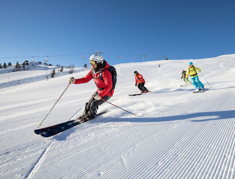 Erstklassiger Service für unsere Gäste: Vor dem Hotel hält der Skibus, bis zur Schatzbergbahn sind es nur 3 Minuten. Nach einem gelungenen Skitag kehren Sie über die Skiroute #28 direkt zum Haflingerhof zurück.