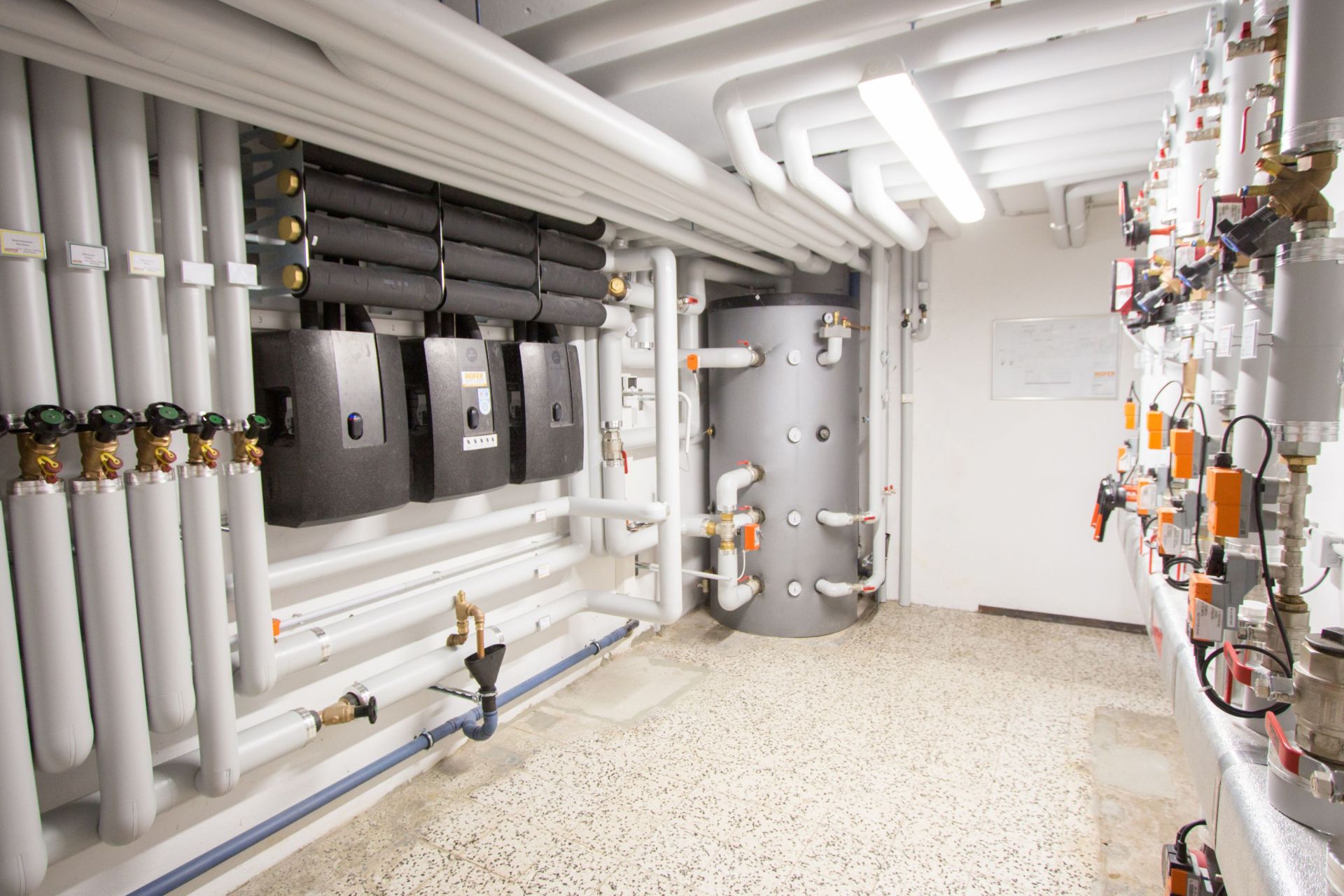 Es geht voran! Decke und Boden der Heizzentrale werden komplett neu betoniert. Unsere Elektriker und Heizungsinstallateure verlegen insgesamt 4 Kilometer Rohre und Kabel. Das entspricht der Länge der Schatzbergbahn!