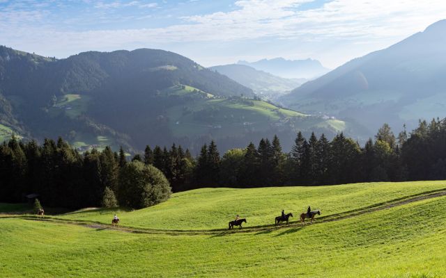 Geführte Ritte über Wiesen und durch Wälder direkt ab Hof. Die ideale Möglichkeit, die Wildschönau vom Sattel aus zu entdecken – für geübte Reiter mit sicherem Galopp.