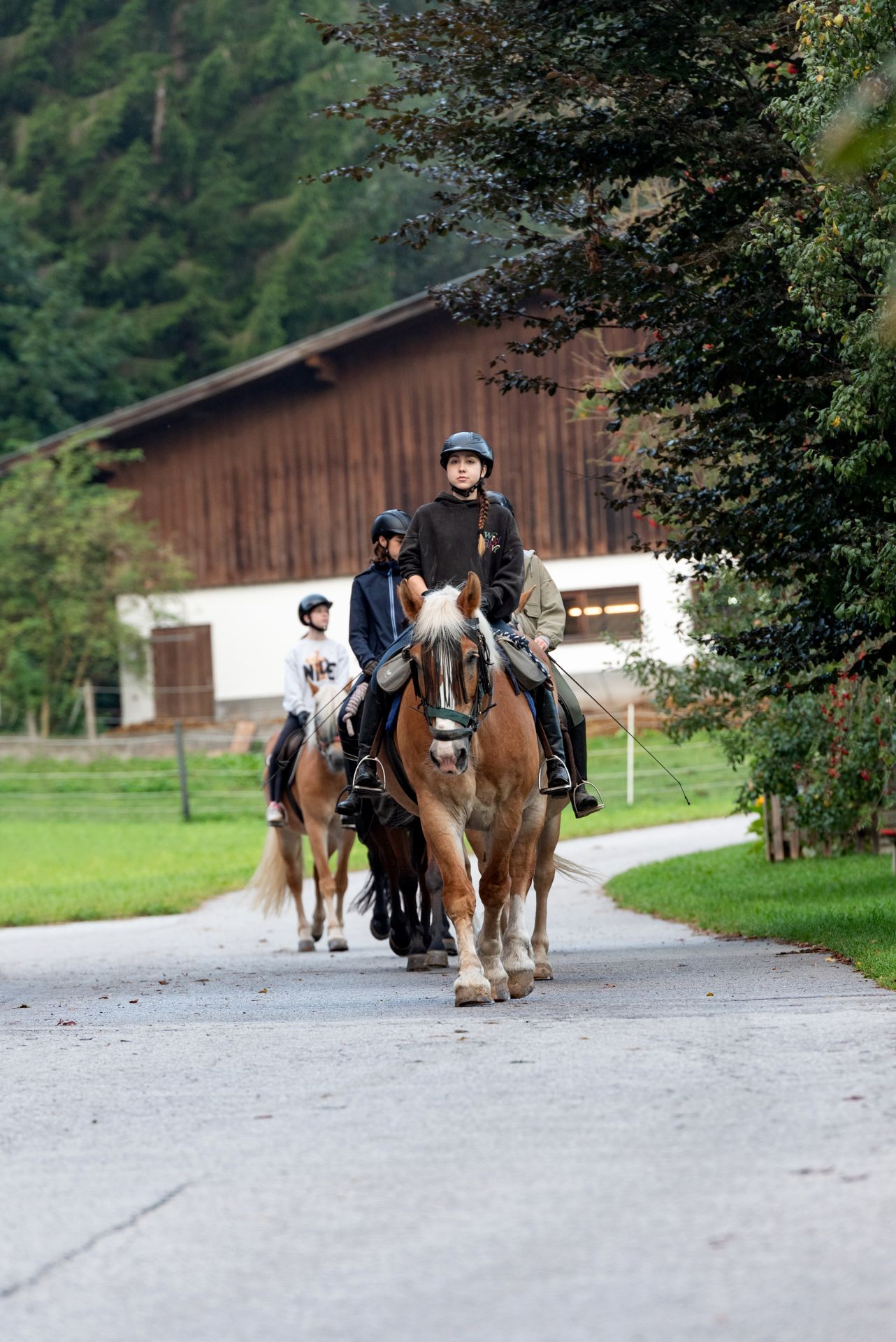 Familien schätzen die überschaubare Größe unseres Reiterhofs, die gut ausgebildeten Haflinger und die persönliche Betreuung durch unser Team. Während die Kinder reiten lernen oder beim Ponyführen erste Erfahrungen sammeln, genießen die Eltern die Ruhe der Berge, den Wellnessbereich oder sind einfach selbst mit dabei.