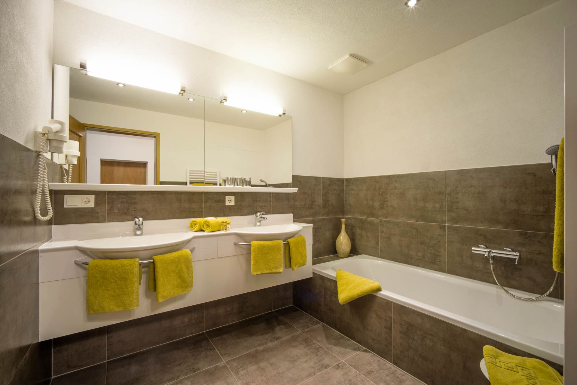 Das großzügige Bad ist dabei Ihre persönliche, kleine Wellnessoase. 2 unserer Suiten verfügen zusätzlich über ein zweites komplett ausgestattetes, separates Badezimmer.