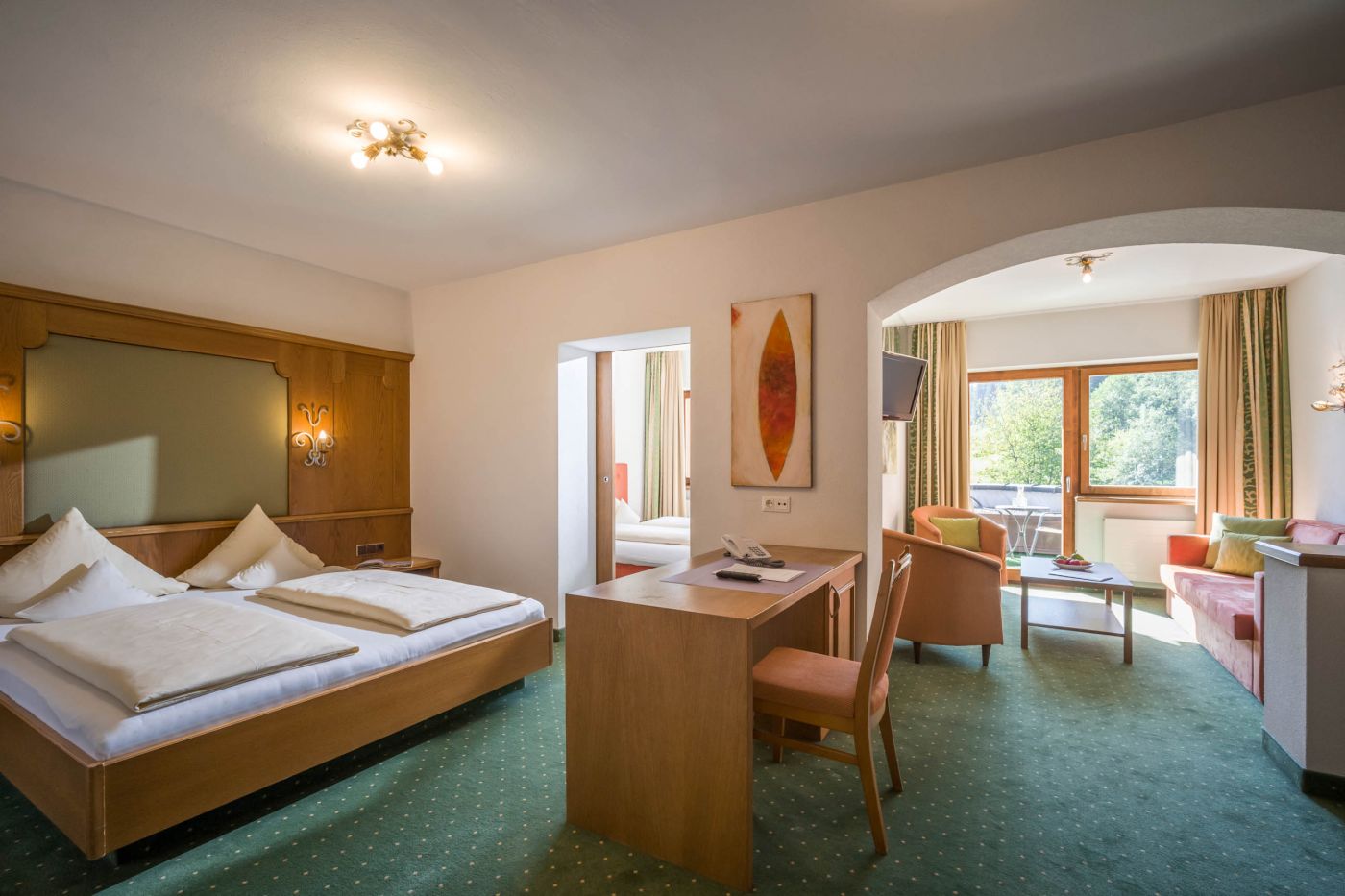 Sie möchten in Ihrem Urlaub hier in der Wildschönau nicht auf luxuriösen Komfort verzichten? Dann sind unsere Suiten genau richtig. Sie verfügen über zwei separate Schlafräume und sind mit jedem erdenklichen Komfort ausgestattet. Die gemütliche Sitzecke lädt zum Lesen oder Sie genießen auf dem Balkon den herrlichen Blick in unseren Garten mit Pool sowie in Richtung Auffach.