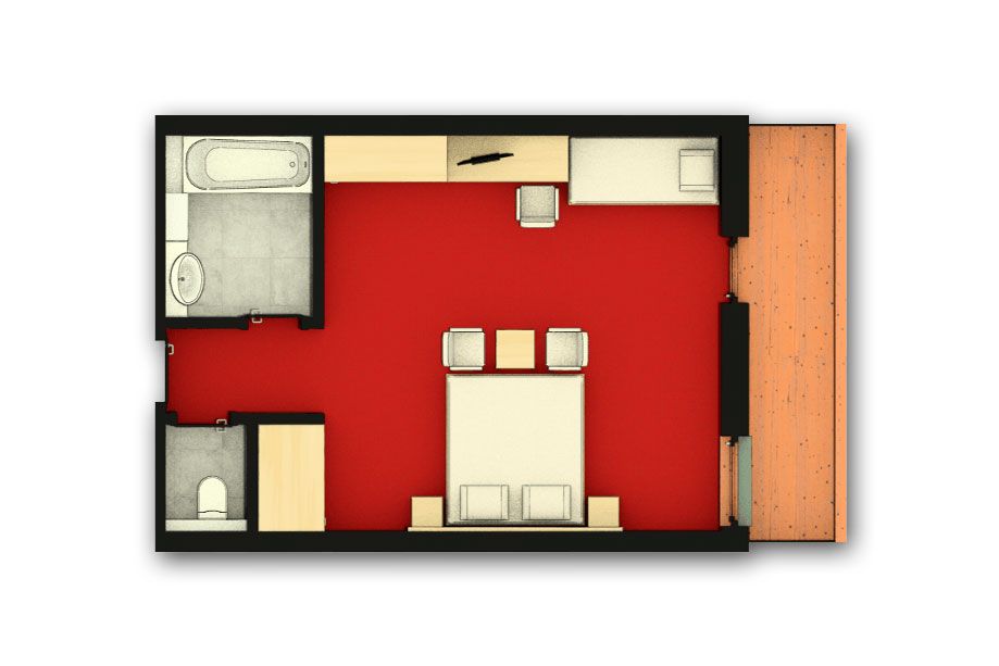 • Holzboden oder Teppichboden (je nach Zimmer)